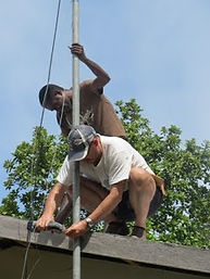Raising the Antenna on the roof of Ebenezer house of Prayer.